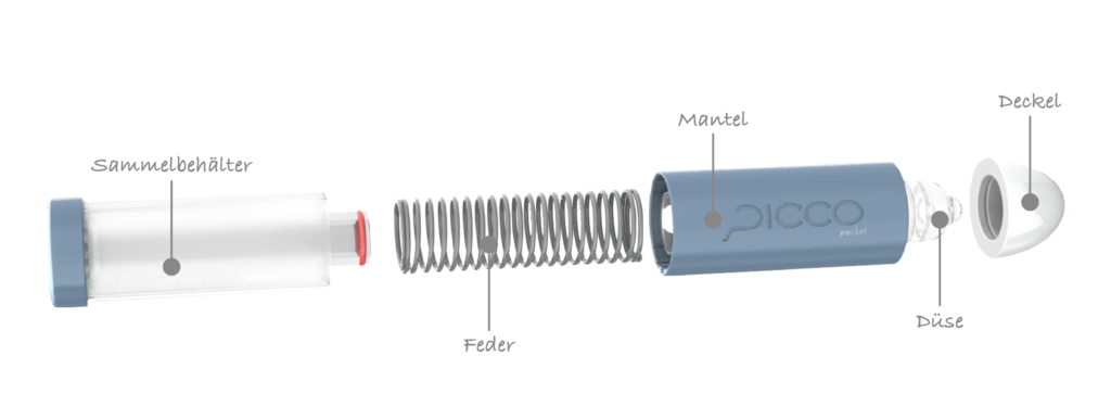Dank seiner Größe, der rein mechanischen Anwendungsweise und absoluten Dichtheit ist der picco pocket der perfekte Begleiter für jeden Tag. Er lässt sich problemlos überall hin mitnehmen, zwischendurch reinigen und einfach wiederverwenden.